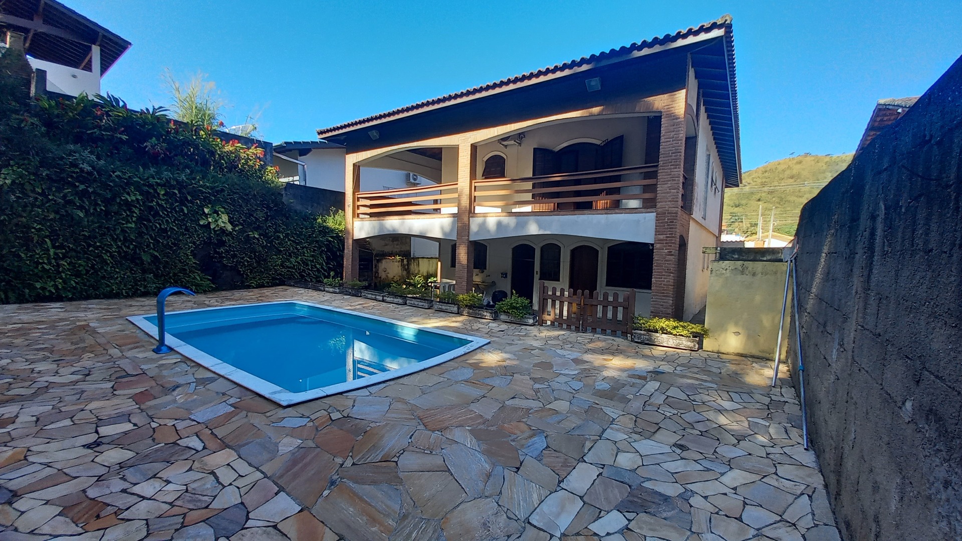 Com uma área construída de 395m², este sobrado conta com um posicionamento solar privilegiado, garantindo a presença do sol da manhã e tarde em seus ambientes. Além disso, o imóvel possui ar condicionado, churrasqueira e uma bela piscina, perfeita para os momentos de lazer e descontração.